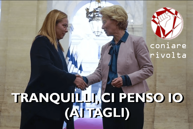 Tutto ciò accade mentre la premier Meloni dichiara che il Governo si appresta a spendere miliardi per la ricostruzione in Emilia-Romagna. Specifica, tuttavia, che le coperture economiche saranno trovate qua e là nelle pieghe del bilancio (ossia, tagliando altre voci di spesa). Al di fuori della retorica messa ogni giorno in campo dai rappresentati del Governo, questi numeri certificano, qualora ce ne fosse ancora bisogno, lo spirito antipopolare del Governo Meloni. Oltre ai continui attacchi al mondo del lavoro, l’esecutivo Meloni si mostra ancora più austero del già rigorosissimo governo Draghi. Promettere più austerità di quanta ne prescrivano le istituzioni europee significa perpetrare politiche di massacro sociale e attacco alle fasce più deboli, continuando nel preciso progetto politico di smantellamento dello stato sociale. Solo una lotta senza campo a questo esecutivo potrà arginare questo sfacelo.